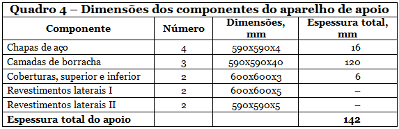 Figura 14 – Aparelho de apoio e parâmetros calculados