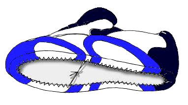 Fig. 22 – Corte para “enformado em colar”Na Figura 23 mostram-se os componentes utilizados no fabrico de uma bota de água, também de construção manual, para ser vulcanizado por este processo.