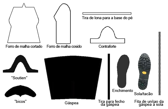 Fig. 21 – Componentes para o fabrico de sapato vulcanizado
