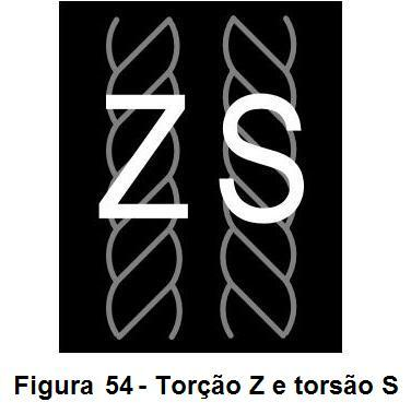 Os fios, como unidades estruturais básicas, podem ser ainda reunidos em grupos constituídos por dois ou mais fios, torcidos de determinada maneira. A torção é caracterizada pelo número de voltas por metro e pelo seu sentido – esquerda ou direita, designadas correntemente por torção S ou torção Z (Figura 54), constituindo assim os chamados cabos ou cordas.