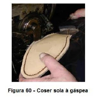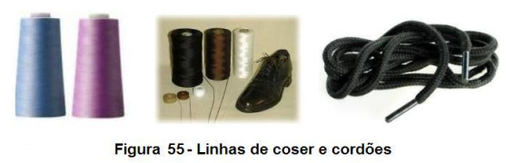 As linhas de coser constituem, como vimos, um importante componente têxtil, utilizado na confecção dos cortes (gáspeas) sejam estes em pele, sejam em tecido (Figura 58 e Figura 59) e também na fixação das solas aos cortes (Figura 60).