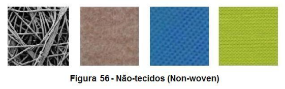 Na Figura 56 apresenta-se uma observação ao microscópio electrónico de um não-tecido obtido pelo processo de fusão (spunlaid) e algumas formas de apresentação de não-tecidos disponíveis no mercado.