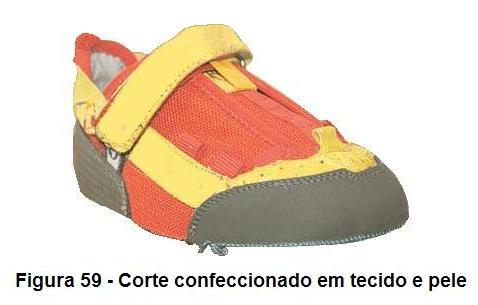 Na construção do calçado são utilizados materiais têxteis em maior ou menor quantidade, tudo dependendo do seu tipo. Os materiais têxteis podem constituir uma importante parte do calçado, senão mesmo a sua quase totalidade (sapatos de quarto de dormir – Figura 57) ou quando são os constituintes da gáspea.