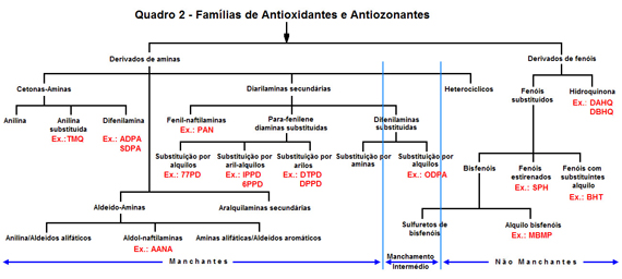 Os principais antiozonantes para borracha pertencem às seguintes famílias químicas (Veja-se o Quadro 2):